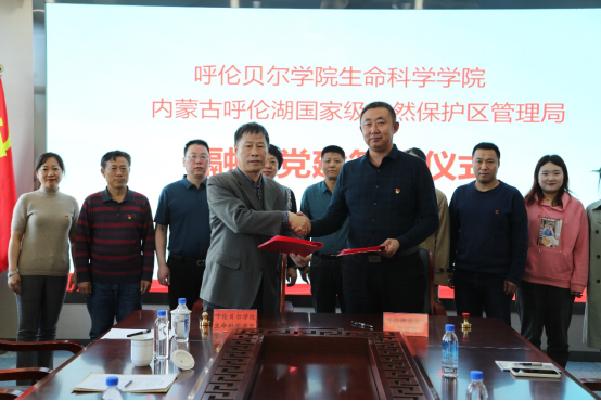 为提升基层党建工作水平,5月8日上午,beat365在线体育与内蒙古呼伦湖国家级自然保护区管理局在呼伦贝尔市北方寒冷干旱地区内陆湖泊研究院会议室举行融合党建签约仪式。生命科学公司党总支全体成员,内蒙古呼伦湖国家级自然保护区管理局党组成员、副局长朝鲁门,党务专职副书记桂满全及管理局党总支成员参加签约仪式。